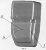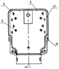Кожух 3 выполнен как цельная прозрачная деталь и имеет две защелки 16 для соединения с цоколем, два отверстия 17 крепления кожуха и два прилива для установки навесной пломбы. В нижней левой части окна кожуха имеется место для установки головки оптического коммуникационного порта 18, соответствующее ГОСТ Р МЭК 61107-2001. В нижней части кожуха имеется сквозное окно 19 для интерфейсных разъемов, крепящихся на плате. С внутренней стороны кожуха, вокруг окна интерфейсных разъемов имеется углубление для закладки герметизирующей прокладки, которая, прижимаясь к печатной плате, обеспечивает герметизацию. Справа от окна интерфейсных разъемов имеются два выступа 20 фиксации проводников интерфейсного разъема. Также в нижней части кожуха имеется окно 21 для доступа к контактам размыкания цепей тока и напряжения. Нижняя часть кожуха содержит паз 22 для крепления крышки клеммной колодки, конструкция которого аналогична пазам крепления кожуха к цоколю. Окно кожуха углублено на 3 мм относительно остальной поверхности.