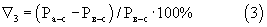 После записи измеренных значений частоты сети, тока, напряжения и мощности потерь холостого хода фазы «а-с» в энергонезависимую память 2.3 и индикаций этих параметров на жидкокристаллический дисплей 2.5, вычислительный блок 2.4 вычисляет процентное отклонение потерь холостого хода измеренных фаз по формулам: