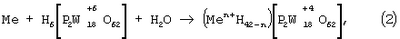 Вольфрам принимает на себя два электрона, изменяя степень окисления с +6 до +4. При этом анионный гетерополикомплекс изменяет свой заряд с 6– до 42–. В цепи возникает постоянный электрический ток.