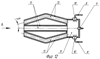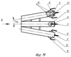 На фиг.16 представлен продольный разрез детонационного пакета, состоящего из набора конусов различного сечения и имеющих общую камеру для воспламенения топливной смеси, а на фиг.17 и 18 – возможное исполнение детонационного пакета с его открытого торца (Вид А).