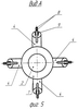 На фиг.16 представлен продольный разрез детонационного пакета 4 состоящего из набора вложенных друг в друга конусов различного сечения 14 и имеющих общую камеру 11 со свечой (свечами) 9 для воспламенения топливной смеси, а на фиг.17 и фиг.18 – возможное исполнение детонационного пакета 4 данной конструкции с его открытого торца (Вид А). Кроме того, детонационный пакет 4 (фиг.16) оснащен форсунками распыла компонентов топливной смеси или клапанами подачи готовой топливной смеси 10 в общую камеру 11. При этом центральная осевая линия камеры 11, расположенной между вложенными друг в друга конусами различного сечения 14, направлена к центральной осевой линии детонационного пакета 4 под углом 0°  90°.