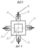 На фиг.4 представлен продольный разрез энергосиловой детонационной установки, оснащенной набором детонационных пакетов, расположенных по периметру полузамкнутой камеры, а на фиг.5 и 6 – возможное исполнение полузамкнутой камеры данной установки с ее открытого торца (Вид А).