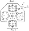 Конструкция гидравлического распределителя представлена на Фиг.1-10. Гидравлический распределитель (см. Фиг.1) состоит из корпуса 1, четырех втулок 2, служащих рабочими корпусами для золотников 3. Золотники имеют хвостовики, на которых установлены пружины 6. Золотники закрыты со стороны хвостовиков колпаками 7 и с противоположной стороны – колпаками 8. В колпаках имеются входные каналы подвода рабочей жидкости Х1-Х4, У1-У4 для управления работой золотников.