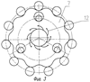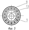 Эксцентричное расположение сателлитов 7 может быть также обеспечено за счет роликовых подшипников 8 с концентричным внутренним отверстием, установленных на входной вал 9, выполненный составным с С-образными вставками 13, имеющими на внутренней поверхности участки плоской формы, взаимодействующие с ответными по форме участками на входном валу.