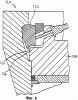 Фиг.4 является упрощенным видом, изображающим в разрезе часть камеры давления, которая оснащена внутренним укупорочным приспособлением и входит в состав пресса, соответствующего другому варианту выполнения изобретения.