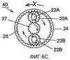 Фиг.6А показывает действие дискового элемента 14 и рычажного элемента 15. Фиг.6В показывает действие разделительного валика 3 и передающего валика 4. Фиг.6С показывает действие центрального зубчатого колеса 37, зубчатого колеса 25 с зубцами на внутренней поверхности и планетарные зубчатые колеса 23А, 23В в механизме 40 снижения скорости.