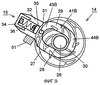 Опорная часть 34 упругого элемента расположена на конце секции 32 остановки вращения. Один конец упругого элемента 36 прикреплен к упорному элементу 35, а другой конец опирается на опорную часть 34 упругого элемента. Упругий элемент 36 прижимает упорный элемент 35 к периферии дискового элемента 14. Упругий элемент 36 представляет собой, например, цилиндрическую пружину. Центральное зубчатое колесо 37, выполненное за одно целое с зубчатым колесом 12 разделительного валика, введено через отверстие 26 для введения и расположено внутри зубчатого колеса 25 с зубцами на внутренней поверхности, зацепляя при этом планетарные зубчатые колеса 23А, 23В.