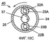 Фиг.10А показывает действие дискового элемента 14 и рычажного элемента 15. Фиг.10В показывает действие разделительного валика 3 и передающего валика 4. Фиг.10С показывает действие центрального зубчатого колеса 37, зубчатого колеса 25 с зубцами на внутренней поверхности и планетарных зубчатых колес 23А, 23В в механизме 40 снижения скорости.