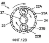 Фиг.12А показывает действие дискового элемента 14 и рычажного элемента 15. Фиг.12В показывает действие центрального зубчатого колеса 37, зубчатого колеса 25 с зубцами на внутренней поверхности и планетарных зубчатых колес 23А, 23В в механизме снижения скорости 40.