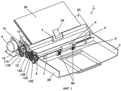 Фиг.1 – вид в перспективе дискретного бумагоподающего устройства в примере варианта воплощения настоящего изобретения.