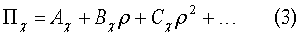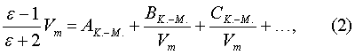 где Здесь первый вириальный коэффициент АК.-М. представляет собой уравнение Клаузиуса-Моссотти, соответствующее идеальному газу. Второй диэлектрический вириальный коэффициент ВК.-М. учитывает отклонение от уравнения Клаузиуса-Моссотти, обусловленное парным взаимодействием молекул. Третий коэффициент СК.-М. дает поправку на взаимодействие между тремя молекулами. Выбор функции Клаузиуса-Моссотти в качестве исходной функции разложения основан на предположении о независимости (или весьма слабой зависимости) поляризуемости атомов или молекул от плотности вещества. Такой вывод в свое время был сделан на основании экспериментального факта, свидетельствующего о независимости поляризации (или рефракции) Недостатком данного метода измерения межчастичных взаимодействий является относительно низкая чувствительность его к межатомным (межмолекулярным) взаимодействием. Объясняется это тем, что основной вклад в энергию межчастичных взаимодействий скрыт в величине Задачей настоящего изобретения является устранение данного недостатка за счет выбора в качестве диэлектрической функции разложения собственно диэлектрической восприимчивости