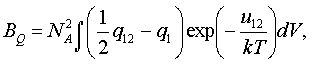– второй вириальный коэффициент свойства Q, которым описывается отклонение от свойств идеального газа в первом приближении. Для одного моля газа АQ=Naq1, где NA – число Авогадро, q1 – средний вклад молекулы в макроскопическое свойство. Для второго вириального коэффициента статистическая механика дает следующий результат: