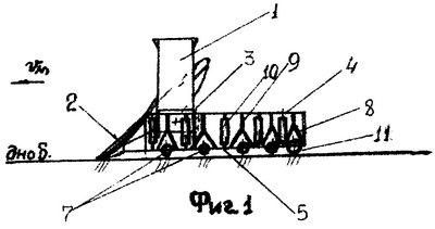 Она выполнена в виде металлической прямоугольной пластины и прикреплена жестко к неподвижным частям корпуса параллельно направлению движения. Существенным недостатком этой полевой доски является сильное сопротивление за счет сил трения-скольжения, воздействующих на все плоскости полевой доски. Использования пятки несколько уменьшает их, но не устраняет полностью.