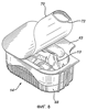 На Фиг.8 запечатанная упаковка 14 включает пластиковый контейнер 68 и отслаиваемый покрывной лист 70, который запечатывается на контейнер 68, чтобы покрыть и закрыть вход в область хранения сменного блока 13. Язычок 72 для захвата прикреплен к углу покрывного листа 70, на конце выступа 43 для использования при первоначальном отслаивании покрывного листа 70.
