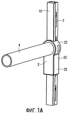 Для специальных конструкций и применений можно закреплять короткие части профиля 1 на какой-либо опорной структуре. Такие участки должны иметь, по меньшей мере, одну пару лежащих друг против друга прорезей 3. На подобных участках профиля 1 также можно навешивать кронштейны 2, причем здесь вертикальное перемещение по высоте отсутствует (см. фиг.7В и 7С).
