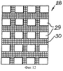 – фиг.12; покрывало из множества подушкообразных частей слоя на сетке;