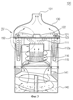 10. Циклонное пылеулавливающее устройство по п.1, дополнительно содержащее уплотнение для герметизации первой и второй частей циклона, вставленное между корпусом циклонного пылеуловителя и первой крышкой.