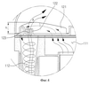 Уплотнение 150 перекрывает первые части 121a воздуховода и вторую часть 112 циклона, а также вторые части 121b воздуховода от вершины до внутреннего угла 90°, так что обмен газообразными фракциями между первой и второй частями 111, 112 циклона осуществляется только через определенную область и впускные отверстия 112c второй части 112 циклона.