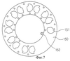 Как показано на фиг. 7, уплотнение 150 снабжено окнами 151, положением вторых корпусов 112a циклона. Окнам 151 придана форма, обеспечивающая возможность частичного перекрытия воздуховодов 121. Кривизна одного участка каждого из окон 151 совпадает с кривизной соответствующей части второй части 121b воздуховода, в то время как другому участку каждого из окон придана форма, обеспечивающая частичную изоляцию первых и вторых частей 121a, 121b воздуховода от второй части 112 циклона. Как показано на фиг. 8, поперечное сечение впускных отверстий 112c второй части 112 циклона задано путем перекрытия области от вершины А на внутренний угол . Таким образом обеспечивают регулирование скорости вихревого потока во второй части 112 циклона и эффективное центробежное отделение во второй части 112 циклона при оптимальной скорости вихревого потока.