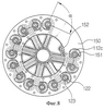 Каждый воздуховод 121 включает в себя первую часть 121а воздуховода определенной длины и вторую часть 121b воздуховода, сформированную за вершиной A. Воздуховод 121 сформирован как составная часть первой крышки 120, причем его вторая часть 121b воздуховода окружает выпускное отверстие 122. Воздуховоды 121 выполнены вокруг выпускных отверстий 122 с чередованием направлений закручивания, обеспечивающим возможность входа воздуха в противоположных направлениях. То есть одна вторая часть 121b воздуховода закручена в определенном направлении, а соседняя вторая часть воздуховода закручена в противоположном направлении и так далее. Таким образом предотвращается возникновение турбулентности потока воздуха после прохождения через вторую часть 112 циклона и выхода из выпускных отверстий 122 во второй крышке 130.