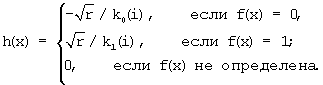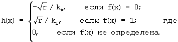 Определение h(x). На первом шаге алгоритма по исходной функции (x) определяются величины k0=|X0| и k1=|X1|, где
