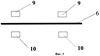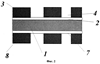 Изобретение иллюстрируется чертежами. Фиг.1 показывает последовательные стадии изготовления микросхемы: I – исходная подложка 1, II – подложка 1 с нанесенным адгезионным диэлектрическим подслоем 2, III – подложка 1 с подслоем 2 и нанесенной металлизацией 3, IV – подложка 1 с подслоем 2, металлизацией 3 и нанесенным фоторезистом 5, V – та же подложка после травления слоя металлизации, VI – та же подложка 1 после травления слоя металлизации, содержащая адгезионный диэлектрический подслой 2 и слой металла 3. Окно в металлизации обозначено цифрой 4. Римскими цифрами VII на фиг.1 обозначена конструкция итоговой ГИС, получаемая после удаления фоторезиста, с подложкой, покрытой с обратной стороны экранирующим слоем сплошной металлизации 6. На диэлектрической подложке 1 из ситалла, поликора или сапфира расположен диэлектрический подслой 2, поверх которого нанесен слой хорошо проводящего металла 3. Цифрой 4 обозначено окно в металлическом покрытии. На фиг.2 показаны готовые ГИС, в которых топология обратной стороны повторяет топологию лицевой. Цифрами 7 и 8 на фиг.2 обозначены адгезионный слой и слой металлизации, существующие, если экранирующий слой металлизации на обратной стороне подложки выполнен так же, как и пленочный слой на лицевой стороне. На фиг.3 изображено расположение токов и зарядов, используемое при анализе емкостной и индуктивной связи элементов ГИС. Цифрой 9 обозначено положение проводника, сформированного из слоя металлизации 3. Цифрой 6 обозначен слой металлизации на обратной стороне подложки, существующий в полосковых линиях. Числом 10 – положение заряда и тока, эквивалентных току, протекающему по слою металлизации 6. Этот заряд представляет собой зеркальное отражение заряда проводника 10 в слое 6.