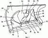 На чертеже видно также, что окружающий питающее отверстие 20 металлический лист 80 имеет криволинейную форму и частично окружает вращающийся элемент 48. Металлический лист 80 может быть изготовлен в виде одного элемента, однако из-за сложной формы донных частей может быть оптимальным его изготовление из нескольких секций, соединенных или сваренных между собой для получения показанной конфигурации. На виде сбоку металлический лист 80 имеет по существу плоскую поверхность, окружающую питающее отверстие 20. Это отверстие 20 представляет собой большой проем в металлическом листе 80. На виде спереди проем питающего отверстия 20 имеет снизу большую ширину, чем сверху. Такая форма обусловлена тем, что убранная масса подается от нижней части вращающегося элемента 48, так что она достигает питающего отверстия 20 вблизи донной части корпуса 18 питателя. Убранная масса забрасывается в питающее отверстие 20 вращающимся элементом 48 в тангенциальном направлении, и большая часть убранной массы идет от вращающегося элемента 48 по направлению, указанному на фиг.2 тремя стрелками. За счет широкого проема питающего отверстия 20 в нижней части основная часть убранной массы может поглощаться сепарирующим ротором 24 в этой области. Та часть убранной массы, которая не сошла с вращающегося элемента 48 на участке движения примерно до одной трети высоты питающего отверстия 20, имеет тенденцию налипать на вращающемся элементе 48 и прокручивается на нем полный оборот. Для предотвращения этого явления должны быть приняты соответствующие меры предосторожности.