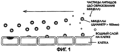 Образование мицелл является ключевым и необходимым условием для усвоения или для клеточной резорбции липидов. Оно происходит либо с помощью желчных солей или ферментов в тонкой кишке или, согласно описанному здесь изобретению, еще внутри продукта. Мицеллы продукта, пропускающие активное вещество и образующиеся согласно изобретению, для того, чтобы подвергаться в пищеварительном тракте обработке не как жирорастворимые, а как водорастворимые вещества, должны отвечать следующим условиям, в результате чего в тонкой кишке отпадет необходимость в специальном мицеллообразовании.