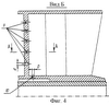 Во внутреннюю полость 11 пилона 4 через топливное отверстие 10 из полости центральной втулки горелки 8 подается топливный газ (фиг.1 и 6). Топливо распространяется в полости пилона 11, смешиваясь с подаваемым перпендикулярно входящему топливному потоку потоком воздуха. Воздушные струи из каждого воздушного отверстия 9 за счет возникающего эффекта эжекции выносят часть топливного газа через выходную щель 12 за пределы пилона 4, где подхватываются основным потоком воздуха. Остальной топливный газ распространяется по высоте h пилона к следующим воздушным струям, истекающим из воздушных отверстий 9 (фиг.6). При этом чем больше расход подачи топливного газа, тем глубже он проникает в полость пилона 11 по высоте h и его длине “L”, тем больше площадь сечения воздушного потока, охватываемая им, и, соответственно, больше количество вовлекаемого циклового воздуха, с которым смешивается топливо (фиг.6). Как показали результаты опытных испытаний, если количество отверстий для подачи воздуха менее восьми, то не обеспечивается равномерность распределения топлива в топливовоздушной смеси в объеме пилона. При выполнении воздушных отверстий с диаметром более чем 5 мм, а также при увеличении диаметра отверстия для подачи топлива из центральной втулки горелки в полость пилона более 3 мм, энергии топливной струи при оптимальном рабочем расходе подачи топлива уже не хватает для проникновения топливного потока по всей длине и высоте пилона. По этой причине наблюдается радиальная неравномерность распределения концентрации топливовоздушной смеси в объеме пилона. Подача воздуха и топлива контролируется САУ подачи топлива.