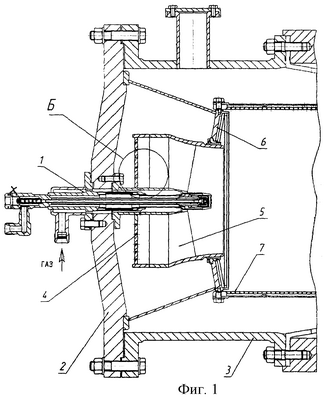 Как показали результаты опытных испытаний предлагаемого устройства, при его практической реализации достигается технический результат, заключающийся в существенном улучшении смесеобразования, распределения топливовоздушной смеси и обеспечении ее оптимального состава независимо от эксплуатационного режима работы ГТУ (сброс и набор мощности, работа при минимальной, рабочей и пиковой нагрузках).