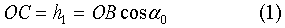 Цифровой вычислитель 8 предназначен для определения толщины h1 (см. фиг.2 – прямоугольный треугольник ОВС), эквивалентной длине катета ОС по измеренной второй камерой 5 длины гипотенузы ОВ, совмещенной с осью симметрии отраженного потока, и известному значению угла 0 по формуле