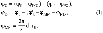 PC, P’D – изменение фазы волны на отрезках PC и P’D;