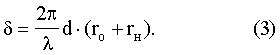 Из полученного выражения следует, что в разности фаз восстановленных интерферирующих лучей содержится информация о векторе смещения. Соотношение (3) является основой количественной интерпретации интерференционной картины, по которой, зная направление освещения объекта ro и направление наблюдения rн, можно определить вектор смещения d.