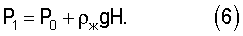 Давление P1 газа в одном из резервуаров, находящемся в положении “min”, равно сумме давлений газа во втором резервуаре и гидростатического давления столба жидкости с высотой, равной высоте ее подъема в трубке 20. Поскольку второй резервуар в этот момент находится в положении “max”, то давление газа в нем Р0 и давление P1, выражается суммой: