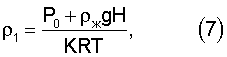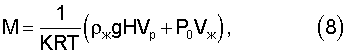 Масса газа, поступившего в любой из резервуаров за все время вытеснения жидкости из него, равна разности масс m1 и m0 и, в соответствии с (1), (3), с учетом (5), (7), выражается формулой: