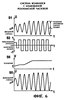 На фиг.5 и 6 изображены характеристики измерительного сигнала S1, выходного сигнала S2 функции триггера Шмитта или передаваемого на цифровой фильтр 20 сигнала S2, коэффициента S6 усиления и управляющего сигнала S5, причем фиг.5 изображает характеристики сигналов при резонансной частоте, а фиг.6 – при измененной резонансной частоте.
