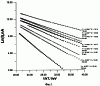 На фиг.1 представлены экспериментальные зависимости тока объемной проводимости в приповерхностном слое ферритового образца при различных значениях суммарного времени выдержки в нагретом состоянии t при температуре отжига Т=600°С и их аппроксимации линейной зависимостью.