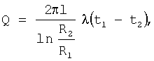 При стационарном тепловом состоянии количество тепла Q, передаваемое от внутренней поверхности цилиндрического образца к наружной на участке длиной l, определяется уравнением
