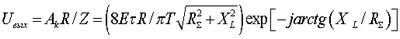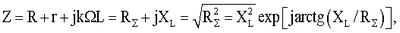 где r – активное сопротивление обмотки, L – индуктивность фазной обмотки, R =R+r – полное активное сопротивление цепи, XL – реактивное сопротивление в области частоты 0 (фиг.3, б). Комплексная амплитуда для k-й гармоники напряжения на резисторе R определяется выражением