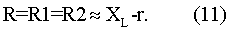 В частности, учитывая, что максимальная чувствительность d 1/dXL характеристики (8) достигается при R =XL, так как