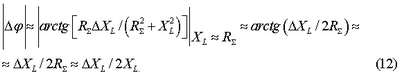 Например, при коэффициенте передачи фазового детектора 0,4 В/град и соотношении XL/XL 0,001, что соответствует замыканию одного витка в фазной обмотке, значение | |=0,0005 рад = 0,028 град, а значение напряжения на выходе фазового детектора uвых=0,4·0,028=11,2 мВ и, следовательно, может быть измерено стандартными средствами.