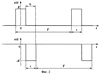 Переходя к суперпозиции двух последовательностей импульсов с частотой повторения импульсов =2 /T (фиг.2), получаем амплитудный спектр полного сигнала (фиг.3, а):