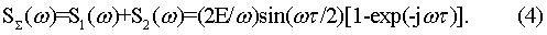 а спектральная плотность суперпозиции двух оговоренных выше прямоугольных импульсов – соответственно выражением