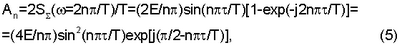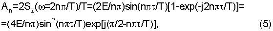 Особенность полученного при t3= спектра (5) состоит в том, что его фазовая составляющая целиком определяется фазовым множителем ехр[j( /2-n /T)], так как остальные сомножители при любых значениях n всегда положительны.