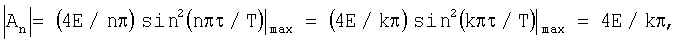 При фиксации гармоники с номером n=k (частота гармоники 0=k ), имеющей максимальную амплитуду на частоте 0 (фиг.3), амплитудный спектр на основании (5) примет вид: