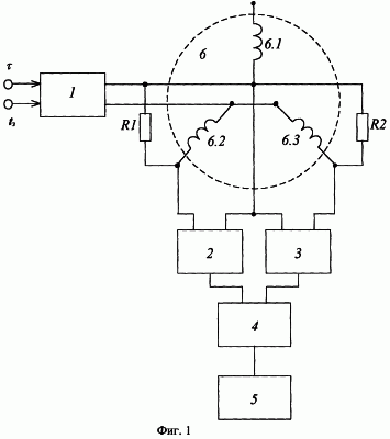 Устройство, реализующее способ, содержит генератор 1 импульсов с регулируемой длительностью и временем задержки t3, два резистора R1 и R2, два избирательных блока 2 и 3, фазовый детектор 4 и вольтметр 5. Первый вывод генератора 1 соединен с первым выводом первой фазной обмотки 6.1 объекта 6 контроля и первыми выводами резисторов R1 и R2, второй вывод соединен с первыми выводами второй 6.2 и третьей 6.3 фазных обмоток объекта 6 контроля. Кроме того, первый вывод первой обмотки 6.1 объекта 6 контроля соединен с первыми выводами избирательных блоков 2 и 3, вторые выводы второй 6.2 фазной обмотки объекта 6 контроля и резистора R1 соединены со вторым выводом избирательного блока 2, вторые выводы третьей 6.3 фазной обмотки объекта 6 контроля и резистора R2 соединены со вторым выводом избирательного блока 3, выходы избирательных блоков 2 и 3 соединены соответственно с первым и вторым входами фазового детектора 4, выход которого соединен со входом вольтметра 5.