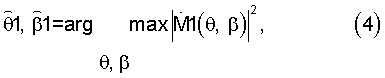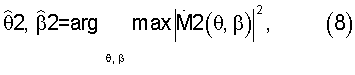 В устройстве 8.2 определяют квадрат модуля углового спектра второго порядка, после чего в устройстве определения максимума 10.2 определяют координаты и значение максимума, причем значение максимума в делителе 11.3 нормируют, привлекая результаты измерения средней мощности (с выхода блока 5.1)