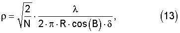 Вывод соотношения (13) основывается на результатах работы [Дзвонская А.Л., Дмитриенко А.Н., Кузьмин А.В. Эффективность измерения углов прихода сигнала радиопеленгатором на основе метода максимального правдоподобия. Радиотехника и электроника. 2001, т.46, №10, с.1242-1247].
