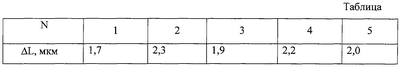 Для проверки точности фокусировки устанавливался на манипулятор мишени специальный шаблон-мишень в виде плоского алюминированного зеркала диаметром 10 мм. На торцевой поверхности зеркала была нанесена микромарка в виде шкалы из линий шириной 5 мкм. Шкала наблюдалась в горизонтальный измерительный микроскоп от оптической скамьи ОСК-2, размещенный в камере на время определения точности. В микроскопе фиксировалось (запоминалось) положение одного из штрихов сетки. Затем шаблон-мишень выводился из фокальной области и выполнялась вся последовательность действий по повторной установке шаблон-мишени. Отличие в положении штриха по сравнению с предшествующим его положением дает погрешность в фокусировке и характеризует данное устройство. Измерения проводились 15 раз. Типичные результаты пяти из них приведены в таблице, где N означает номер измерения, L – погрешность в микрометрах положения штриха.
