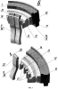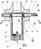 О факторе электрических потерь в плите контактной 1 можно судить, сравнивая используемые в ней материалы, например, по их удельному электрическому сопротивлению, которому эти потери пропорциональны, так при температуре 400°С, в 10-8 Ом·м: нержавеющая сталь – 97; сталь 20-47, медь – 6,5. При мощности стенда порядка 10 и более МВт указанный фактор потерь существенно превалирует, особенно в контактных соединениях плиты, и с учетом этого на фиг.1, 2, 3 представлен один из вариантов конструкции верхнего токоподвода для данной мощности, где плита контактная 1, если рассматривать ее по сечению, состоит из материалов: “медь (поз.11) – сталь 20 (поз.10) – медь (поз.24)”. Имея хорошие электрические характеристики, медь уступает стали по прочностным, поэтому вместо меди, в случае надобности, или при относительно малом давлении рабочей среды внутри ТК 2 в плите можно использовать или сочетать со сталью материалы, выполненные на медной основе, но имеющие лучшие, чем у чистой меди, прочностные и технологические характеристики, такие как, например, хромистая или фосфористая бронза, латунь и др. Сталь 20, поз.10, используется здесь по прочностным и электрическим свойствам, а медь, поз.11 и 24 – с целью однородности контактирующих материалов (“медь-медь”) и для уменьшения электрических потерь в областях подключения гибких проводников 9 и внешней электрической связи 26. Следует отметить, что указанное сочетание слоев плиты контактной 1 в подобной практике еще пока не было использовано даже в сварных конструкциях, не говоря уже о биметалле. В сварной конструкции плиты при ее изготовлении следует учитывать следующее: при сварке стальной части 10 с медными частями 11 и 24, чтобы избежать коробления плиты контактной 1, которое может в дальнейшем повлечь за собой нарушение герметизации в местах прокладок 5, медную часть 11 по периметру центрового отверстия можно приваривать в виде, например, медного кольца с надрезами, полуколец или сегментов с расчетными габаритами или использовать специальную технологию, оснастку и т.п. Такие же цели предусматривают и при выборе внешнего контура плиты контактной 1 в форме шестигранника 23, когда к каждой его грани приваривается медная пластина 24. В этом плане биметаллическая плита “медь-сталь-медь”, которая изготавливается монолитной (без обычных сварных швов) на заводах спецметаллургии, имеет неоспоримые преимущества. Форма канала для принудительного охлаждения 16 в стальной части 10 также предусматривает условия возможного коробления, помимо этого размещение самого канала в плите контактной 1 не должно нарушать еще и ее прочностных свойств в районе стяжки фланцевых соединений. В общем случае с учетом величины мощности стенда, рабочей температуры плиты контактной 1, давления рабочей среды и т.п. канал 16 в плите контактной 1 может выполняться, а может и не выполняться. Своеобразный буртик 13, шириной порядка 4-х мм, по окантовке центрового отверстия плиты контактной 1 образуется в результате проточки канавки-углубления 12, и свою форму в виде зубца, показанную на фиг.3, он приобретает по мере выполнения пазов 17. При этом пазы 17 своей шириной могут выполняться как вдоль образующей контура центрового отверстия, так и поперек (в этом случае разместится большее число проводников гибких 9, нежели в первом случае). После размещения и установки плит